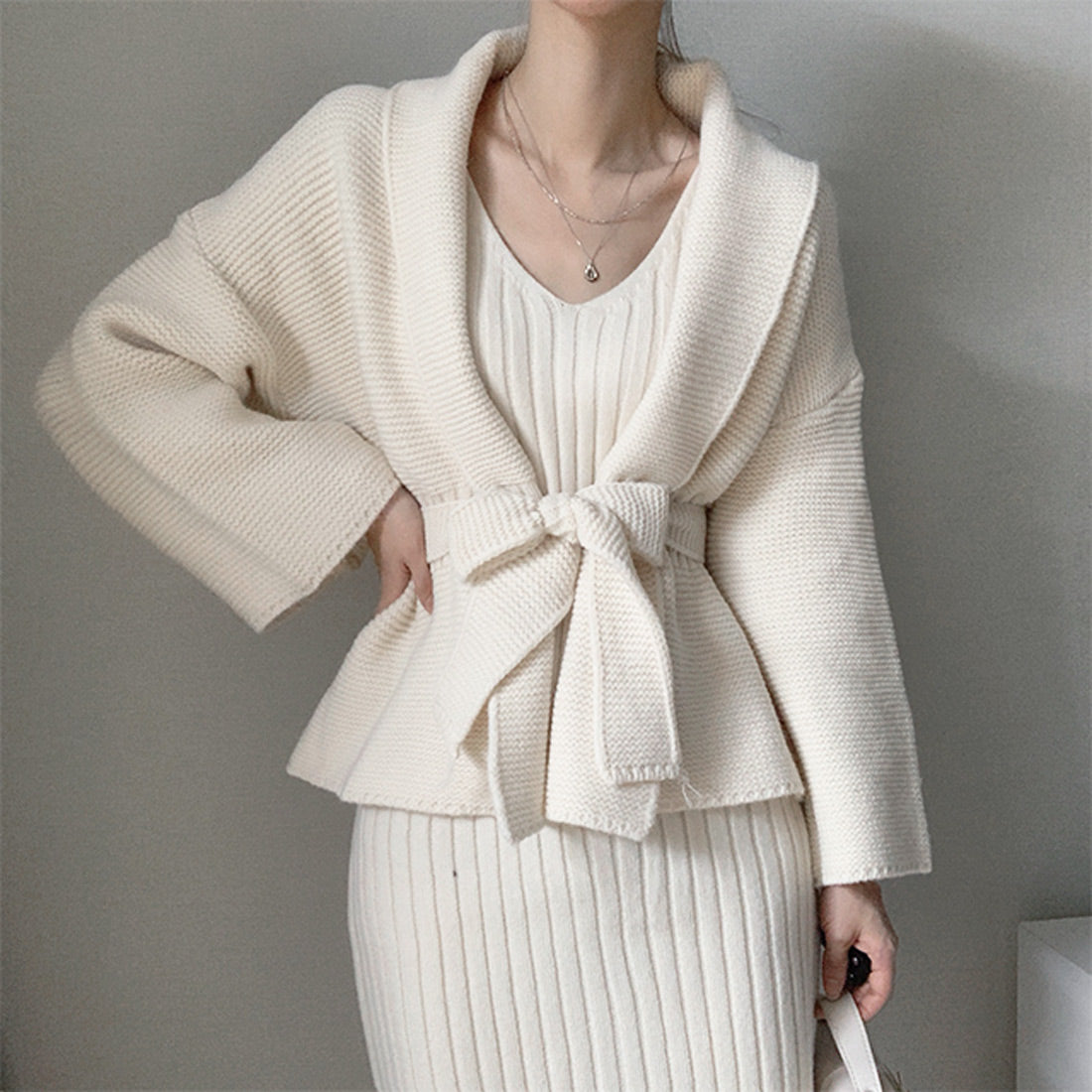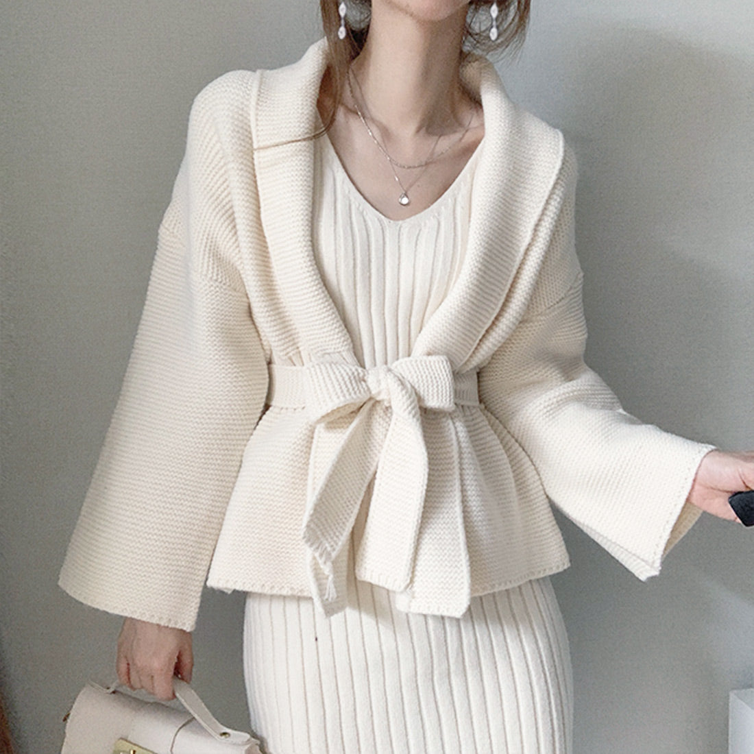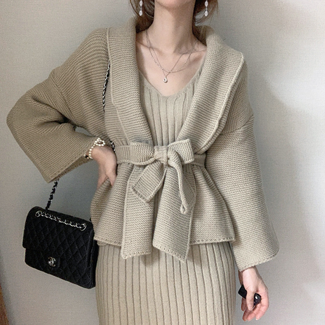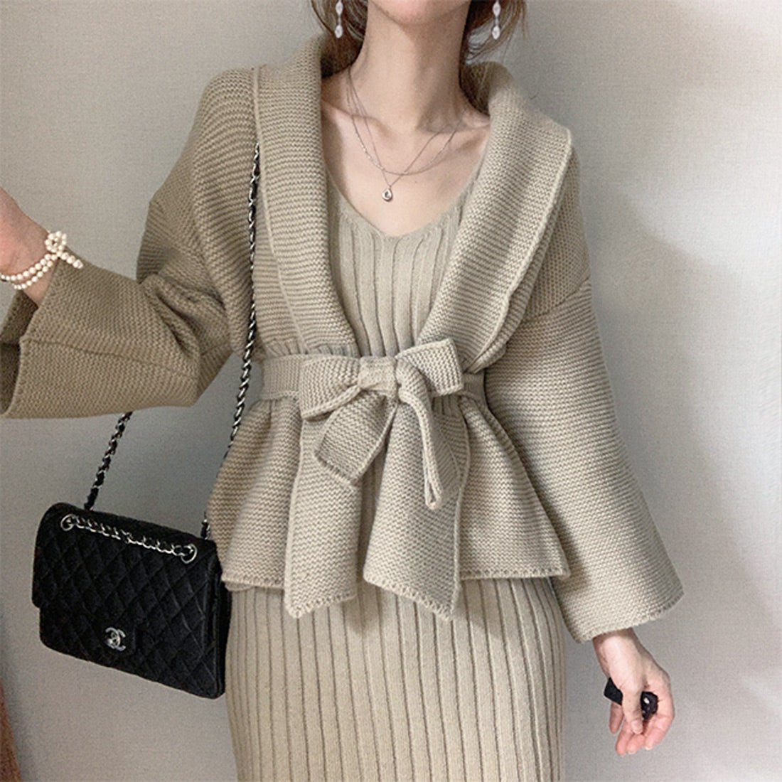 ニットワンピーカーデセットアップ