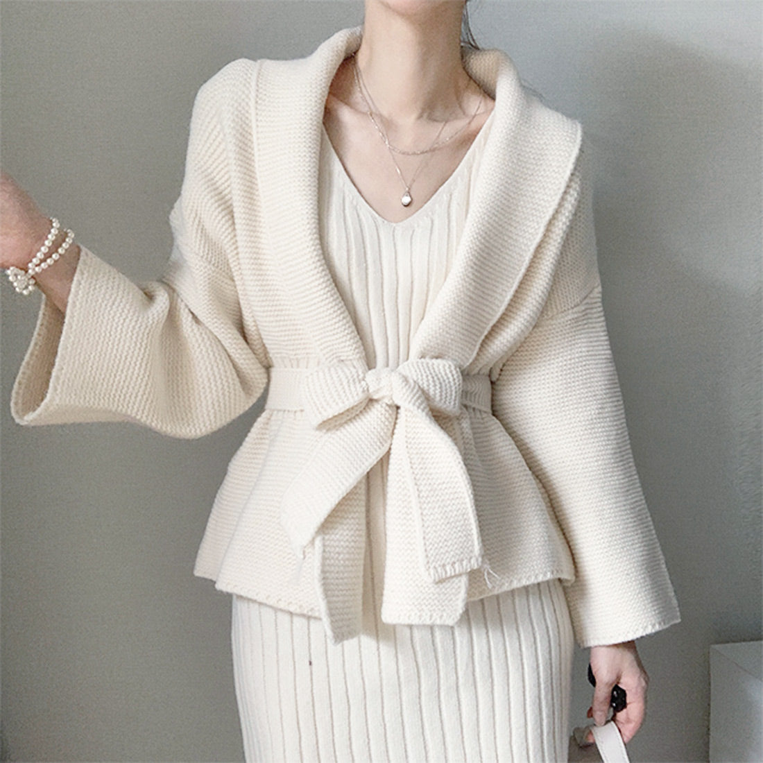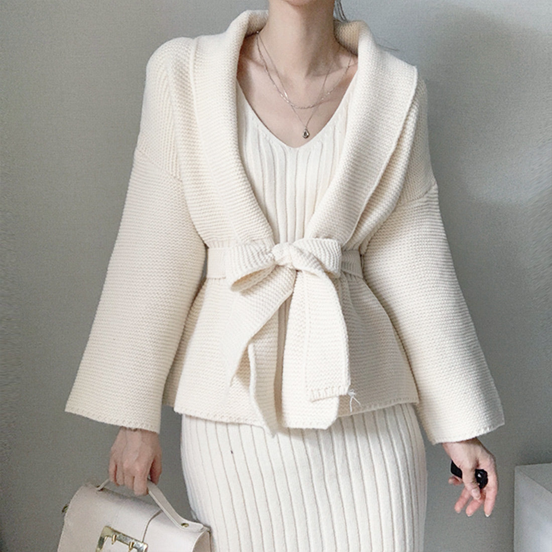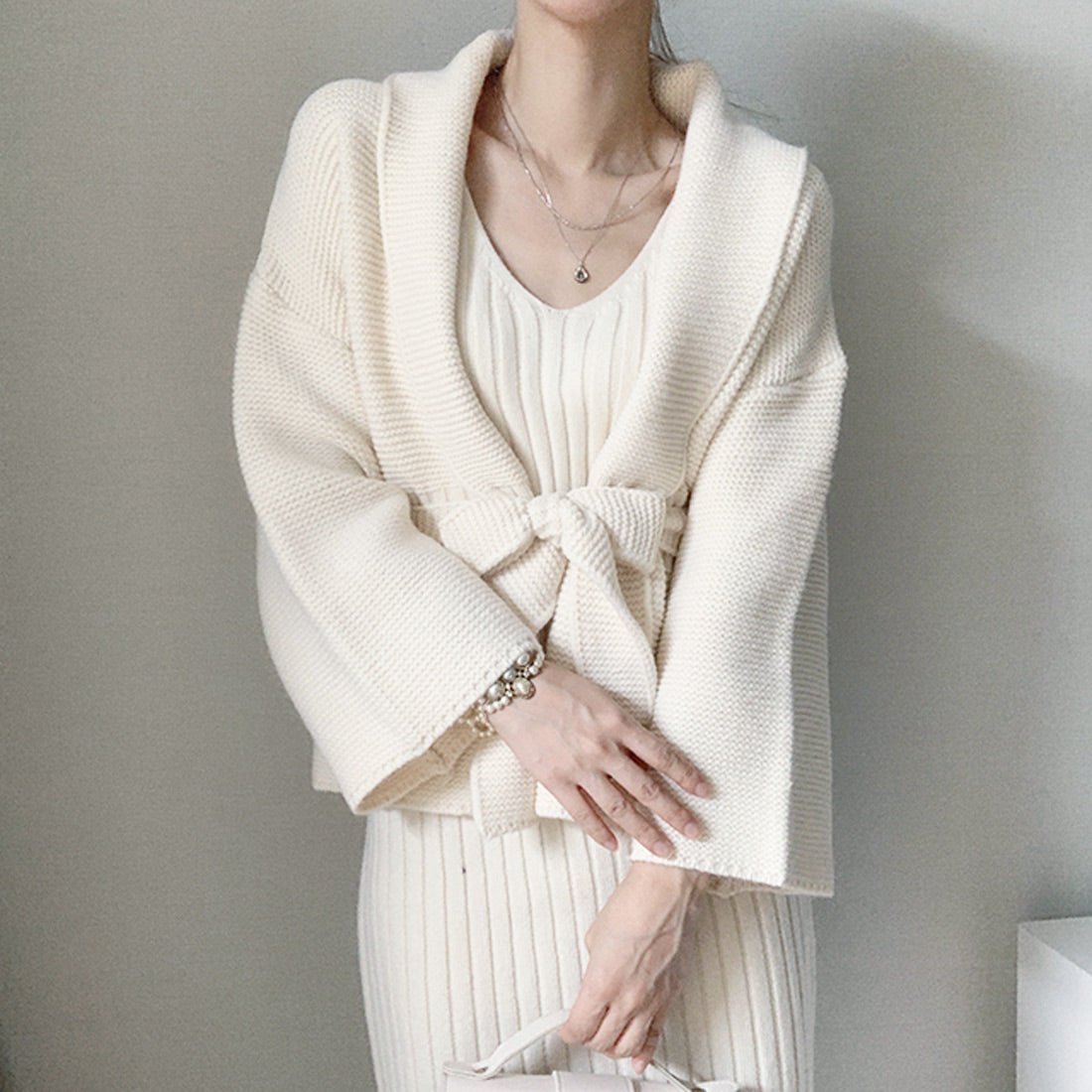 ニットワンピーカーデセットアップ