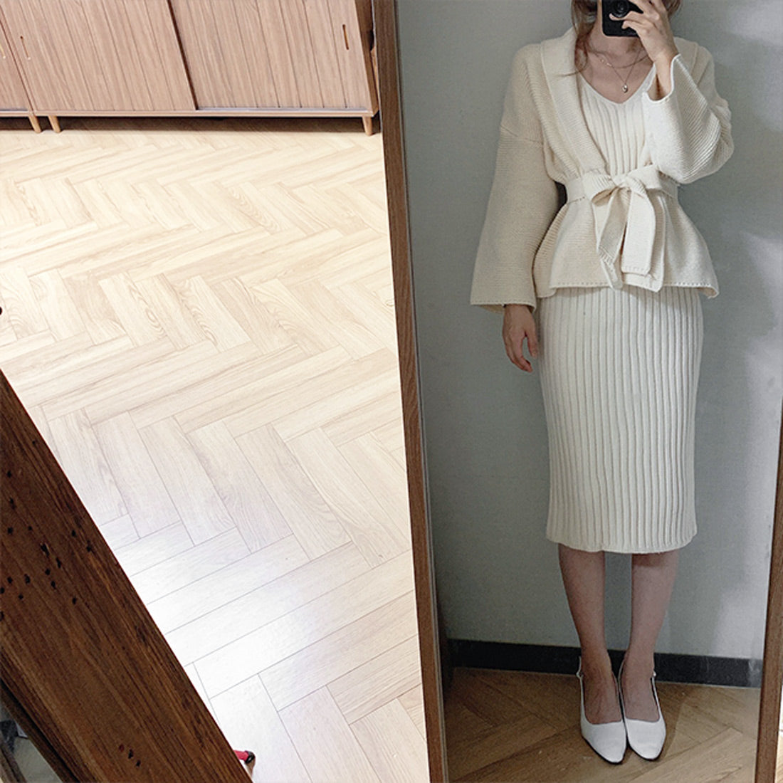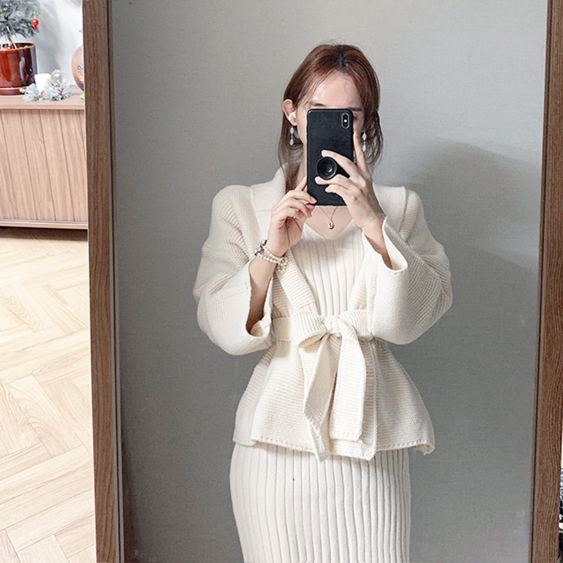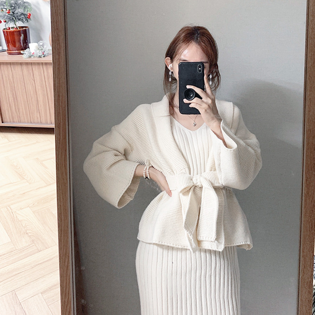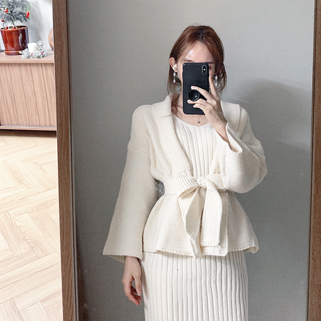 ニットワンピーカーデセットアップ