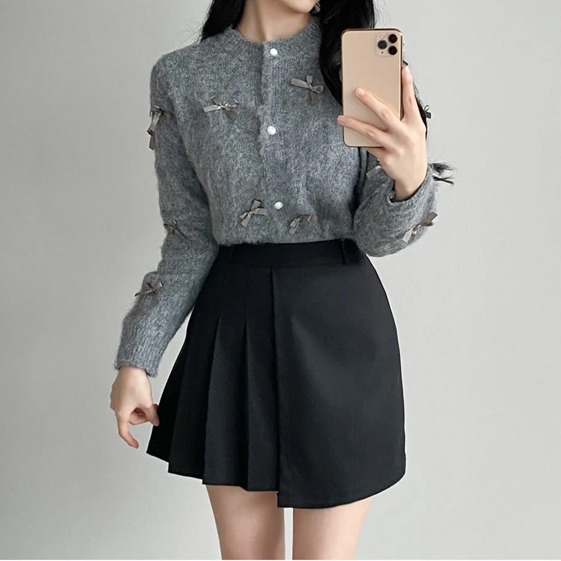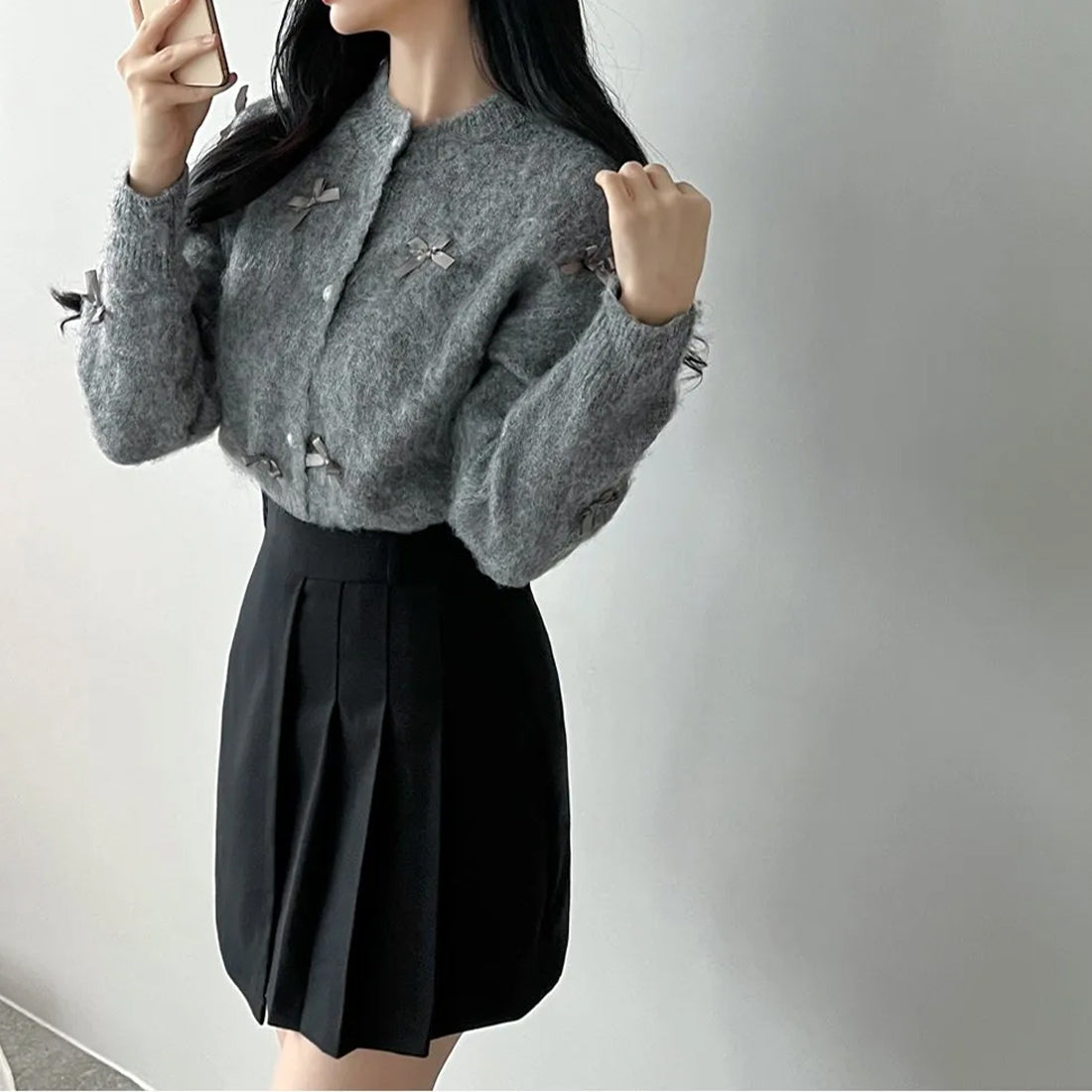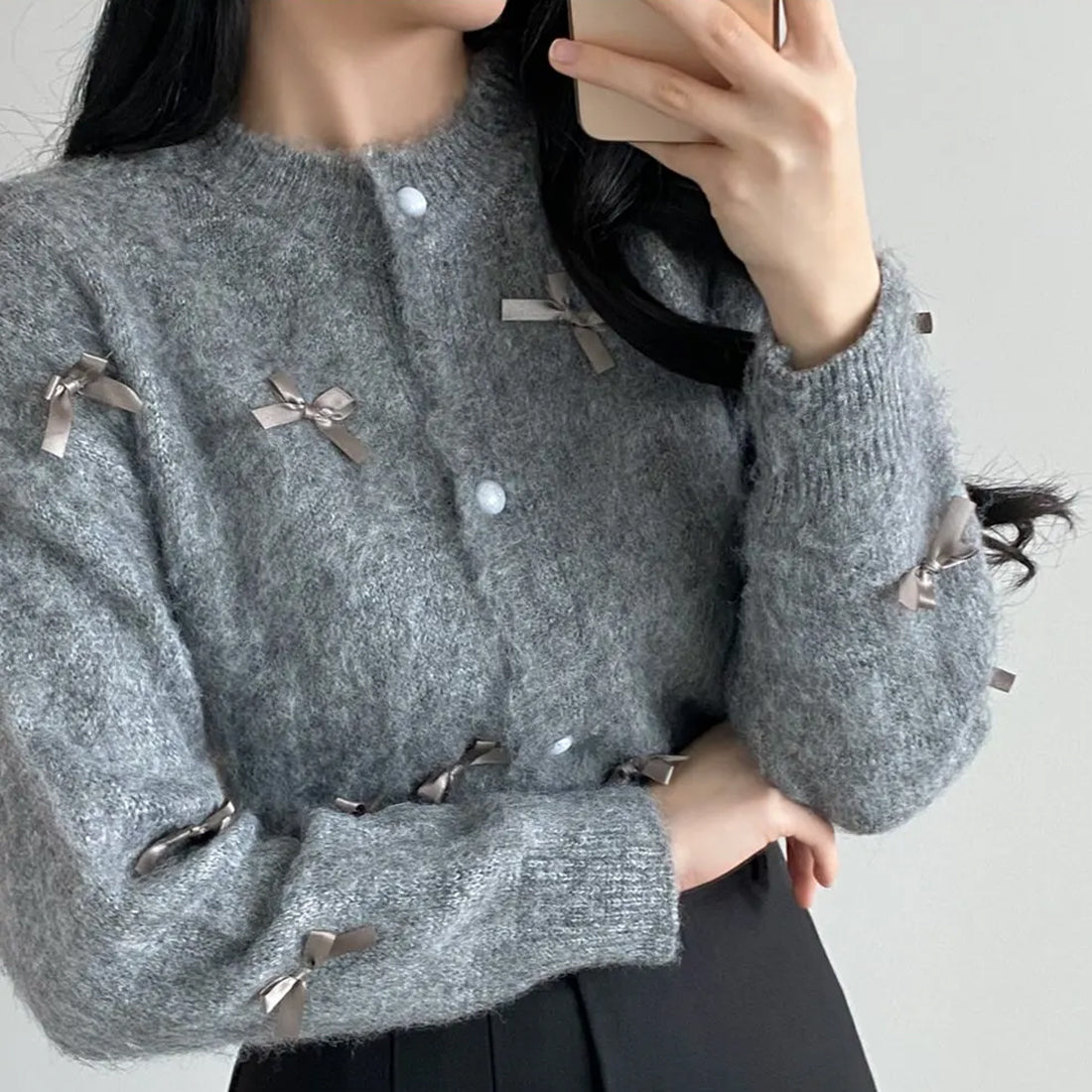可愛らしいリボンデザインが特徴のリボンカーディガンが新登場!柔らかなニット素材を使用し、心地よい着心地を実現しています。リボンがアクセントとなり、カジュアルなお出かけからちょっとしたお洒落なシーンまで、さまざまなスタイルにマッチします。このカーディガンで、あなたのコーディネートに華やかさをプラスしましょう!
