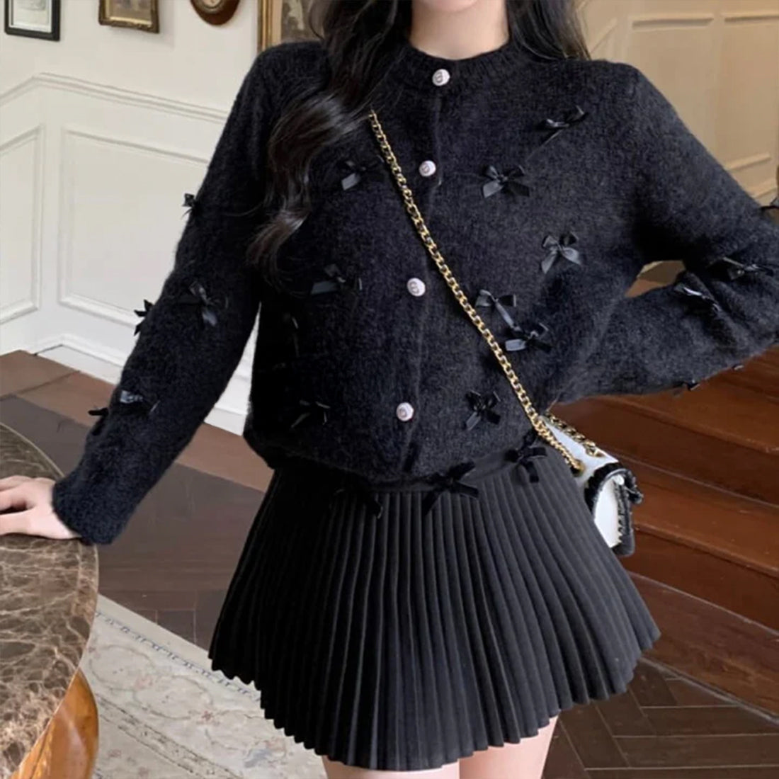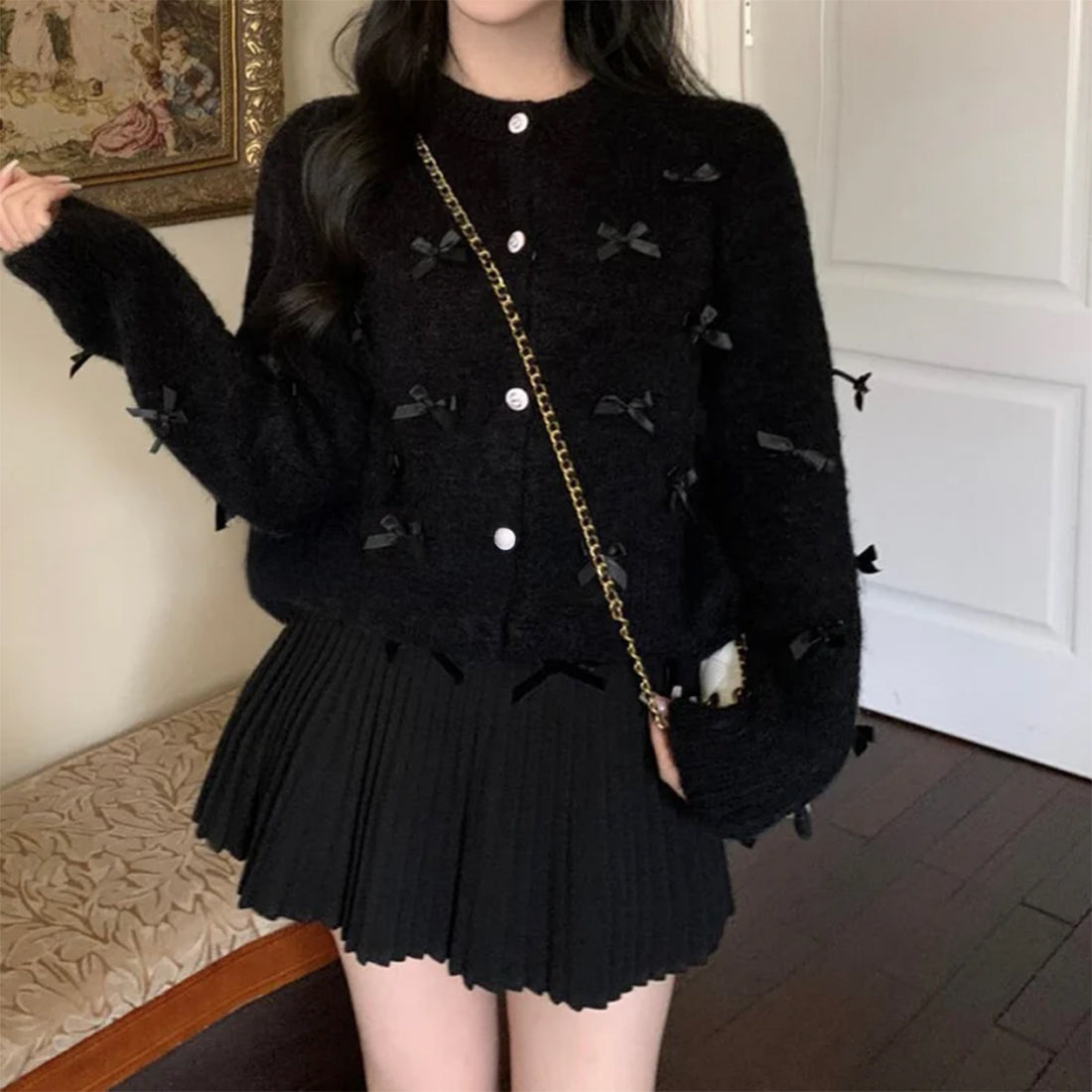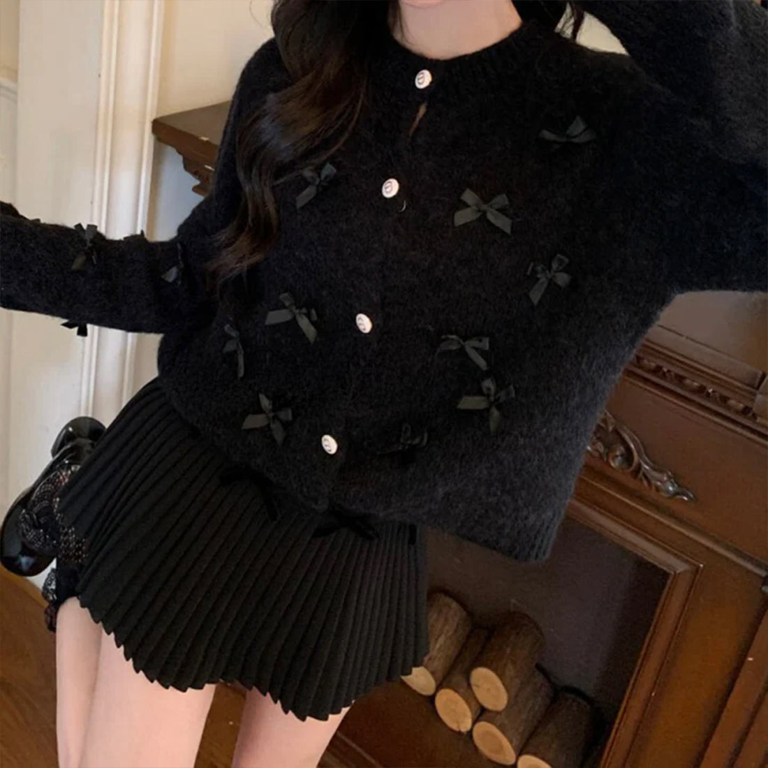 可愛らしいリボンデザインが特徴のリボンカーディガンが新登場!柔らかなニット素材を使用し、心地よい着心地を実現しています。リボンがアクセントとなり、カジュアルなお出かけからちょっとしたお洒落なシーンまで、さまざまなスタイルにマッチします。このカーディガンで、あなたのコーディネートに華やかさをプラスしましょう!