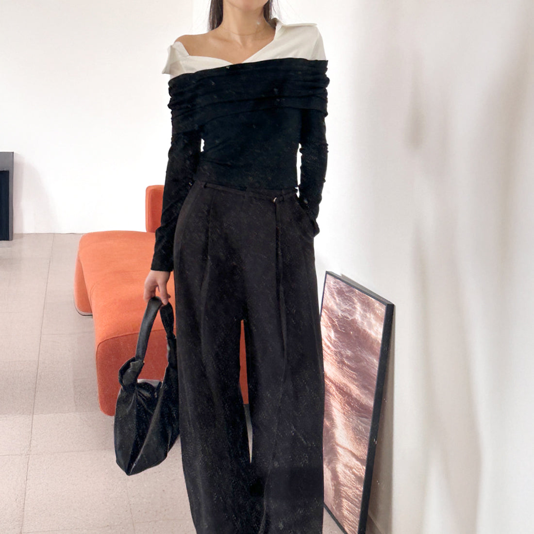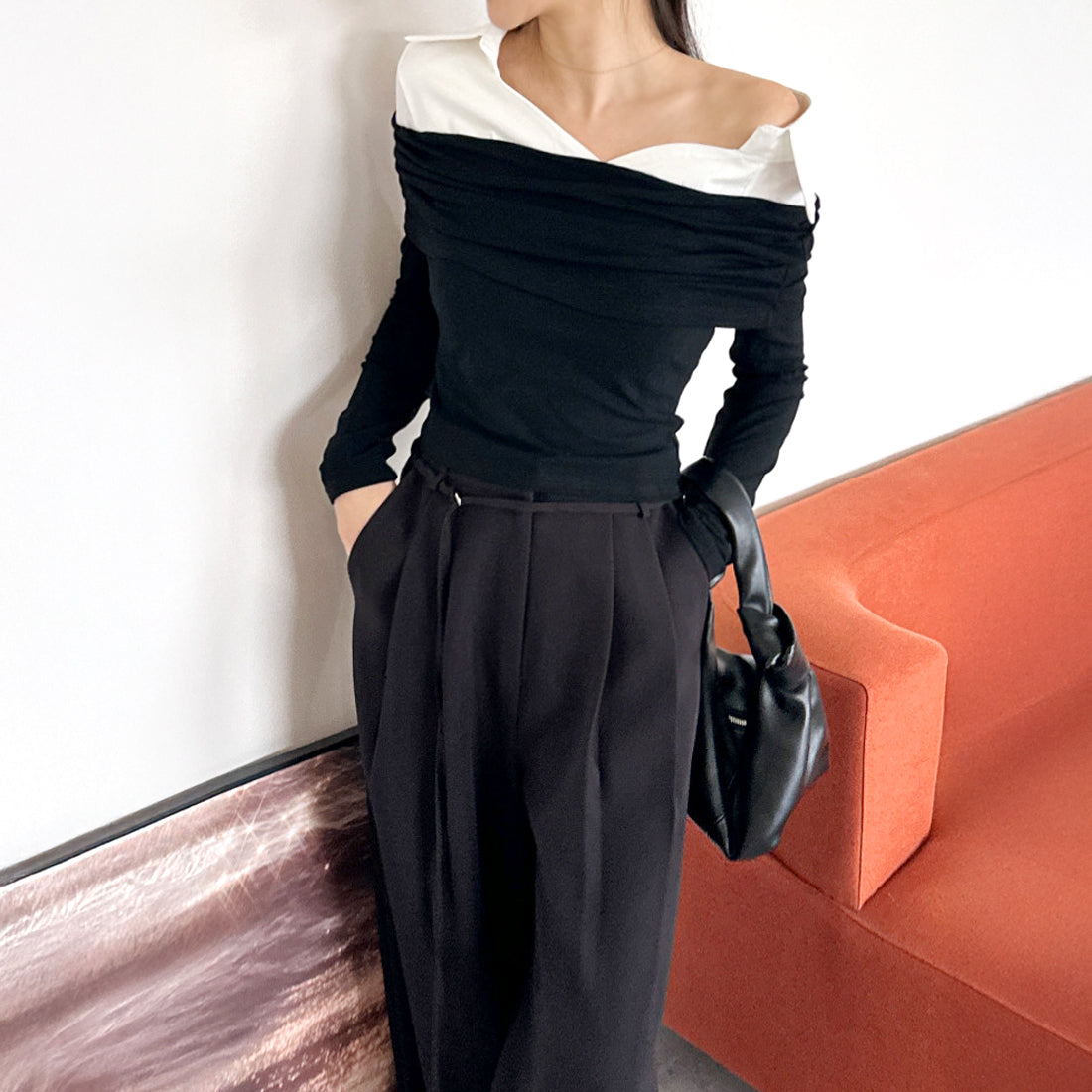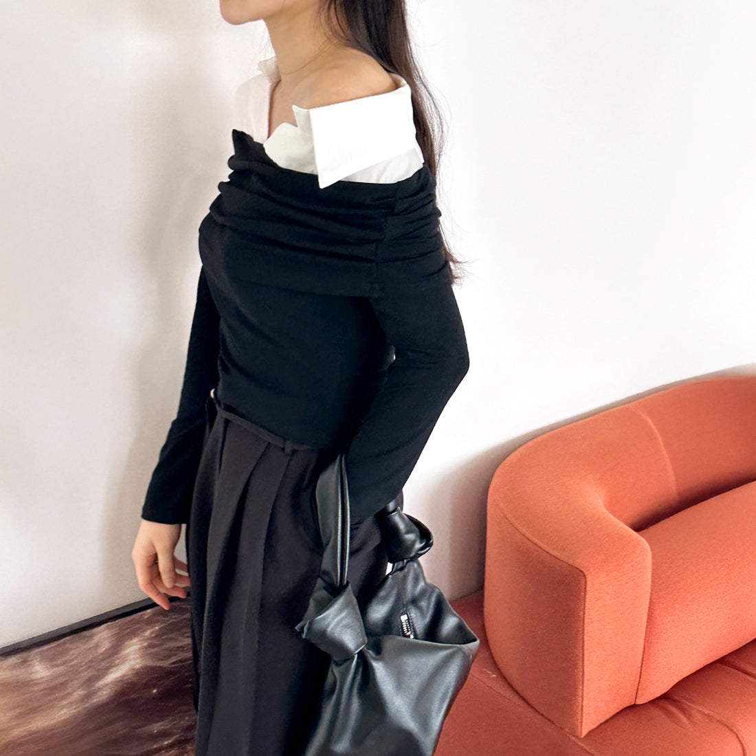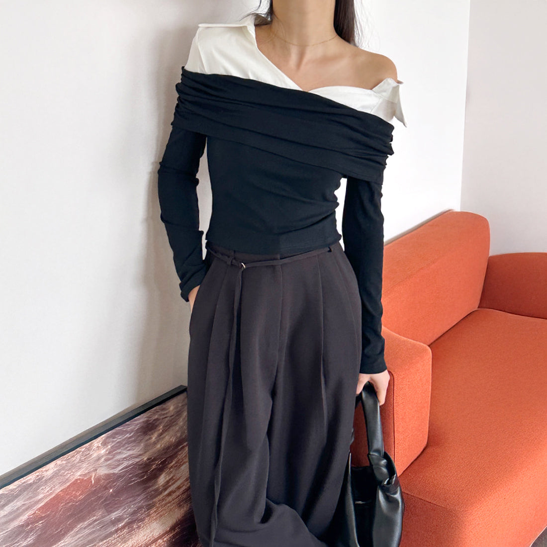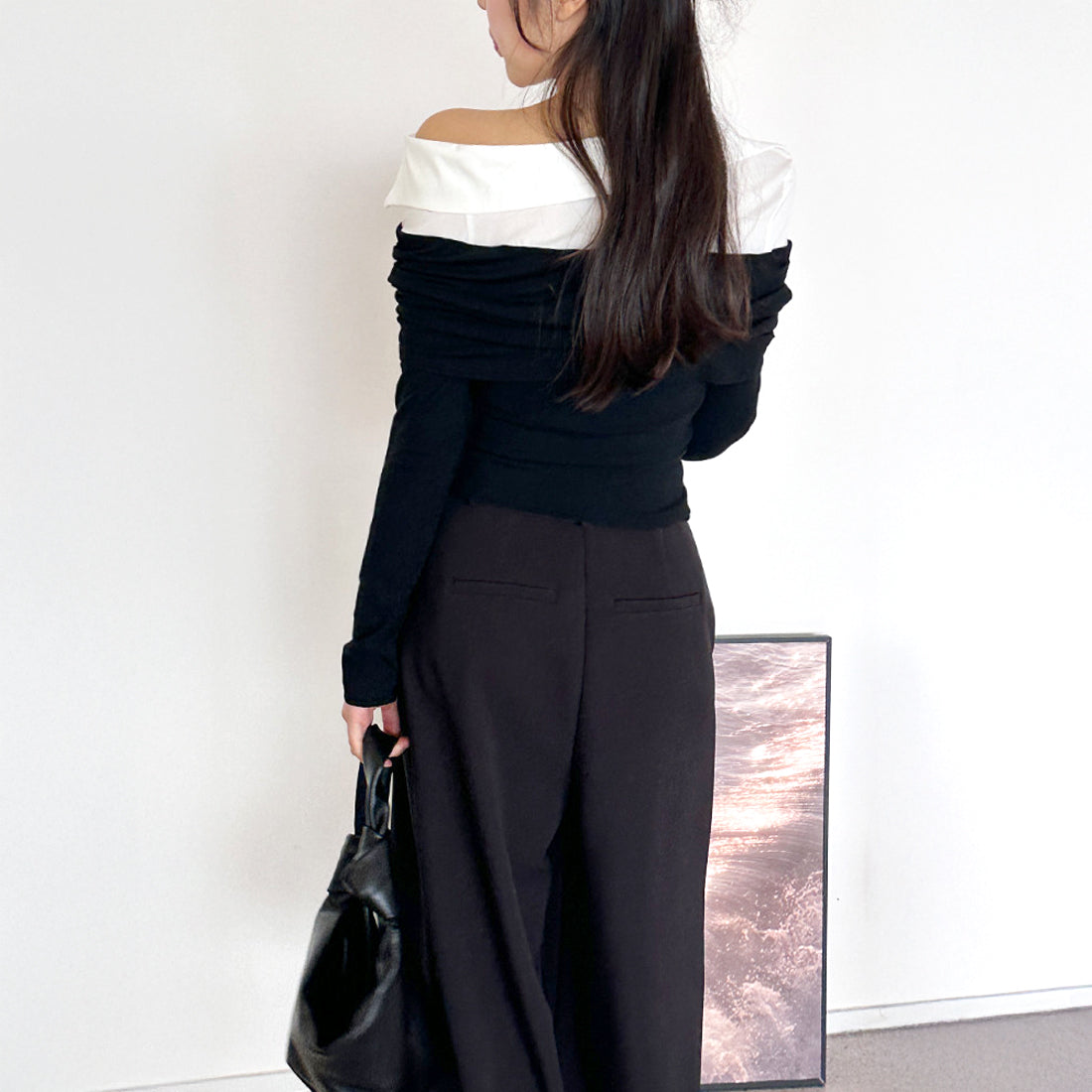 オフショルシャツレイヤードTシャツが新登場!柔らかな素材を使用したこのTシャツは、オフショルダーのデザインが特徴で、カジュアルさとエレガンスを見事に両立しています。軽やかな着心地で、デイリースタイルからお出かけまで幅広くご活用いただけます。このTシャツで、あなたのスタイルに洗練された魅力をプラスしてみませんか!